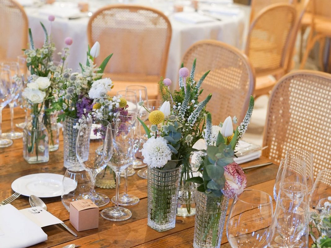 La atmósfera de la boda es una de las cosas a tener en cuenta de cara a elegir las flores. El invierno invita al recogimiento y a crear espacios que sean acogedores es clave. Puedes acompañar las flores de otros elementos como velas a diferentes alturas, recipientes de cristal y detalles metalizados. Mantelerías de terciopelo o telas más gruesas para dar una sensación de abrigo.