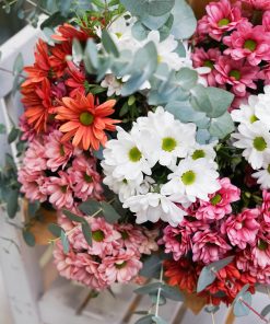 Alegre, fresco y lleno de vida. Este ramo de margaritas de colores destaca por su mezcla vibrante de tonos y su aire desenfadado y natural. Una composición luminosa que transmite optimismo y cercanía, ideal para regalar buen humor, celebrar pequeños momentos o llenar cualquier espacio de color.