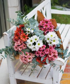 Los colores de las margaritas varían según la disponibilidad. Cada ramo se elabora manteniendo siempre una combinación armoniosa y equilibrada de tonos, respetando el estilo y la esencia del arreglo.